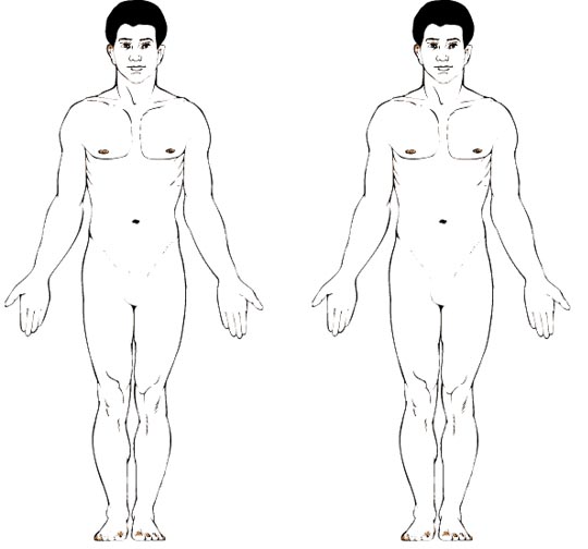 4. Using the list from item #A2, Draw and Label organs into the blank bodies. You have four bodies so use all of them so that you can clearly see all systems. You may omit the skeletal and muscular systems and the peripheral nerves, veins/arteries, and lymph vessels, as well as the integumentary system.