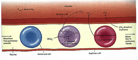 alveolar air. At the same time, hydrogen ions and bicarbonate ions in