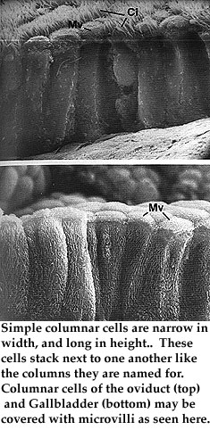Cuboidal (cube-like), and Columnar (tall and thin).