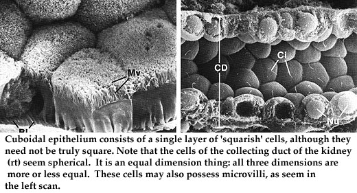 Simple Cuboidal: a single layer of cube-like cells which have a greater