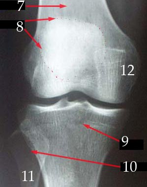 1. Tibial Plateau 2. Head of Fibula 3. Tibial Tuberosity 4. Lateral Malleolus 5. Medial Malleolus 6. Tibia 7. Fibula |